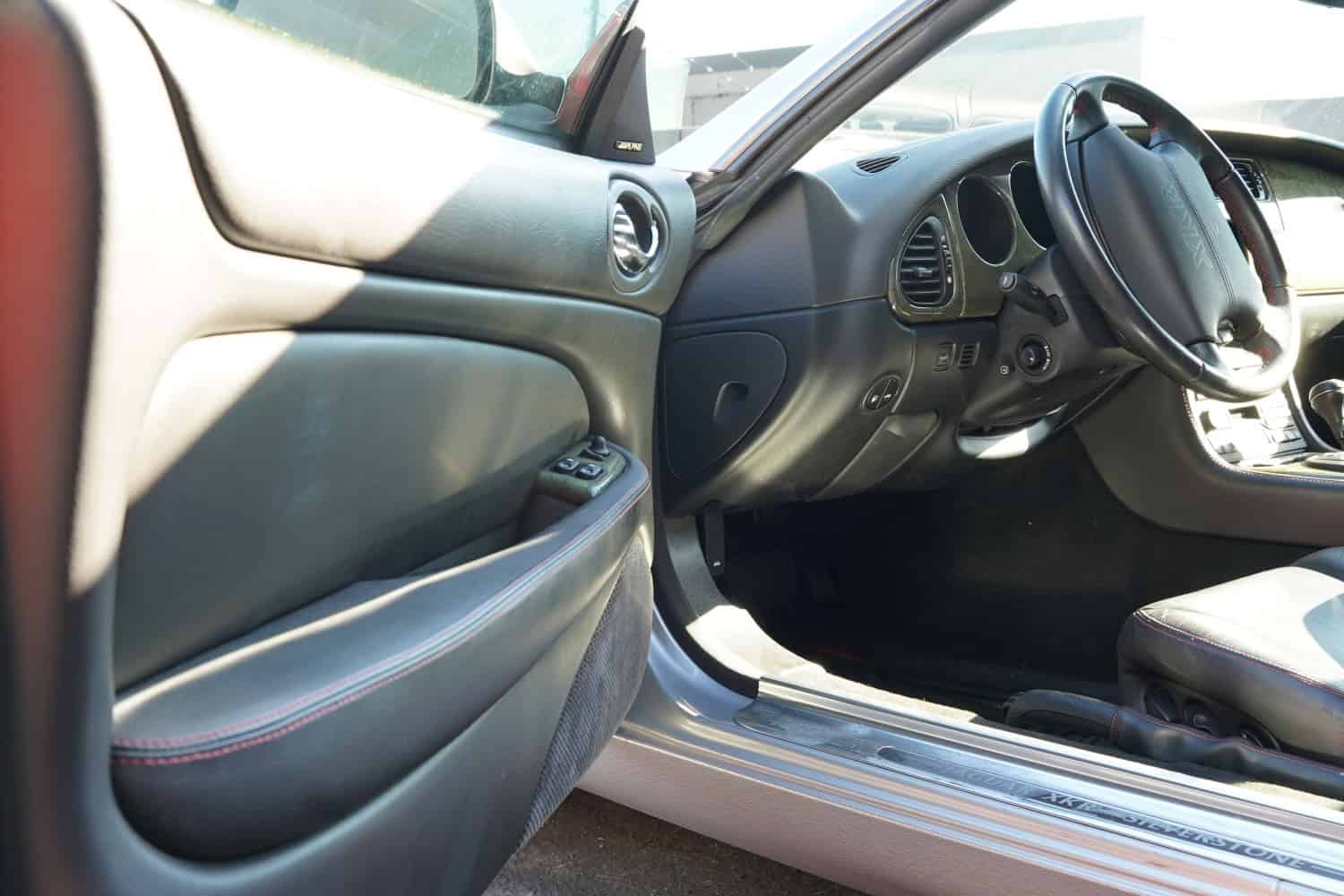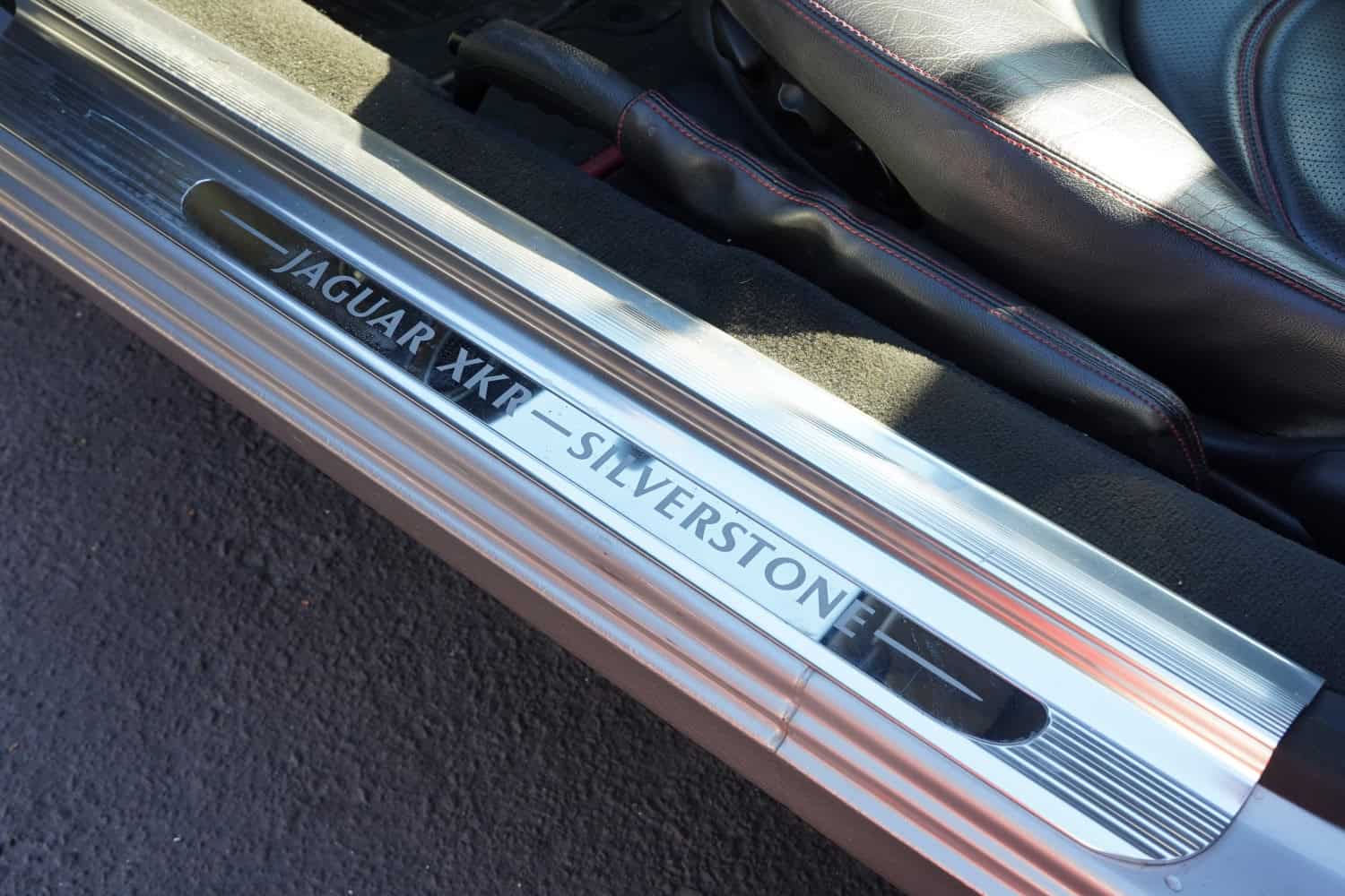 This 2001 Jaguar XKR convertible is one of 250 Silverstone examples produced for the North American market. It is powered by a supercharged 4.0-liter V8 paired with a five-speed automatic transmission and is finished in Platinum over Warm Charcoal leather with red stitching. Features include a power-retractable black soft top, 20″ Detroit alloy wheels, Brembo brakes, rear parking sensors, heated power-adjustable front sport seats, automatic climate control, navigation, a cassette stereo, a CD changer, and an Alpine sound system. The car spent time in Texas and North Carolina before being acquired by WCDM. This special-edition XKR convertible has 29k miles and is now offered by WCDM with manufacturer’s literature, a clean Carfax report, and a clean BC Registration . All Silverstone examples were finished in Platinum with a Jaguar Silverstone-branded “Growler” badge at the front.