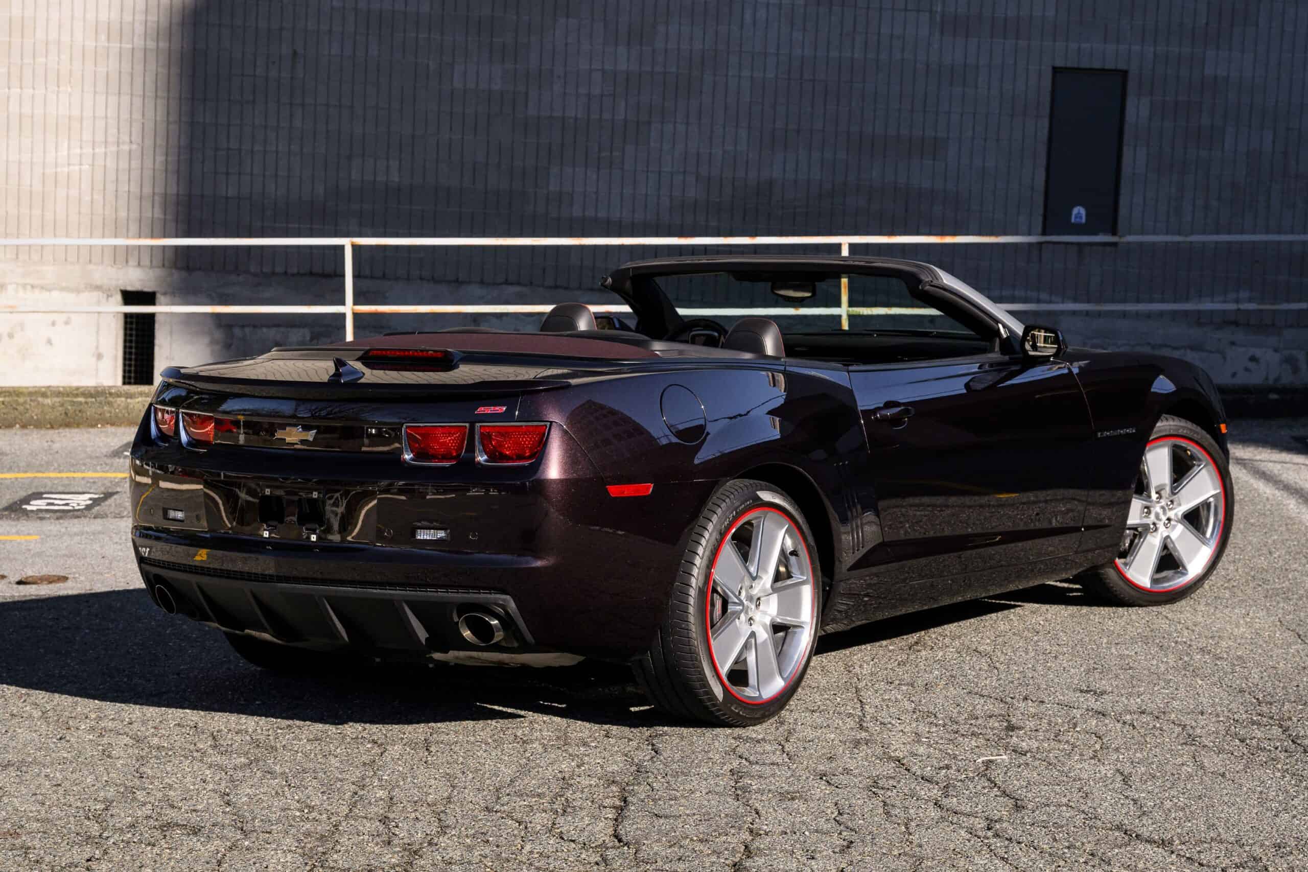 This 2011 Chevrolet Camaro 2SS convertible Neiman Marcus Edition is one of 100 examples offered through the 2010 Neiman Marcus Christmas Book and is finished in Deep Bordeaux over two-tone black and amber leather. Power is provided by a 6.2-liter V8 paired with a six-speed manual transmission, and equipment includes a Bordeaux convertible soft top, silver-finished 21″ alloy wheels with red outline striping, and “ghosted” black rally stripes along with Brembo brakes, HID headlights, heated and power-adjustable front seats, a Boston Premium Audio system, and a head-up display.