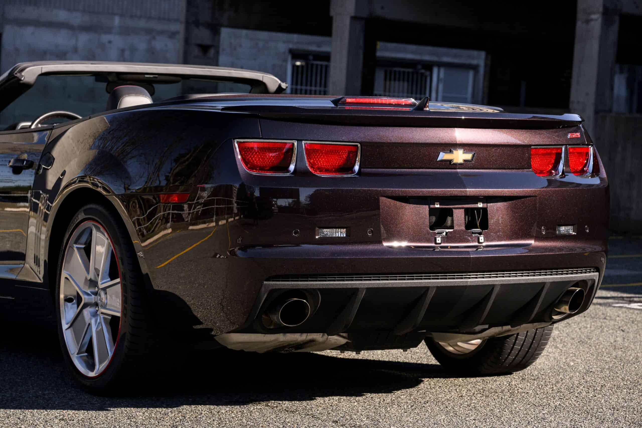 Initially registered in New Jersey, the car spent time in New York and Florida before it was acquired by WCDM. This Neiman Marcus Edition Camaro has 10k kms and is now offered with a clean Carfax report and a clean BC registration. Each of the Neiman Marcus Edition Camaro models is finished in Deep Bordeaux with “ghosted” black rally stripes and a matching Bordeaux convertible soft top.